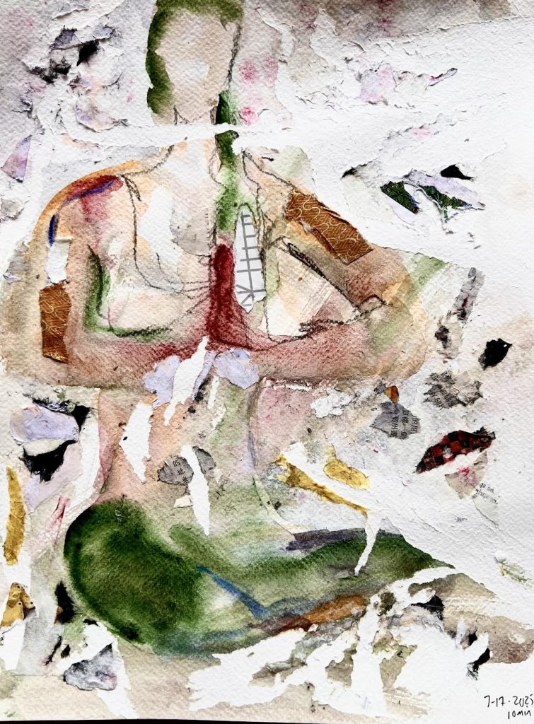 Mia Wenjen watercolor figure painting collage, MINDFUL BREATH
