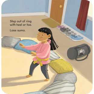 On Saturday mornings, Sumo Joe is a gentle big brother to his little sister. But on Saturday afternoons, he and his friends are sumo wrestlers! They tie on makeshift mawashi belts, practice drills like teppo, and compete in their homemade dohyo ring. They even observe sumo’s ultimate rule: no girls allowed! But when Sumo Joe’s little sister wants to join in the fun, Sumo Joe is torn between the two things he’s best at: sumo, and being a big brother.